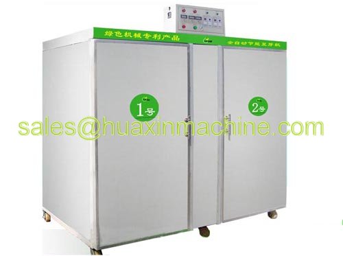 HUAXIN new type bean sprout machine is the modern technology and the traditional process perfect union.It has features such as the artistic design,the control system by the computer,the automatically temperature-controlled,the ozone antiseptic technology used,the automatically water poured on.It is durable as well.The completely bean sprouts machine,realizes in the production process entire automation,which has advantages of time-saving,the labor saving,the low consumption,no noise and pollution and so on.It is a ideal machine for producing bean srout.